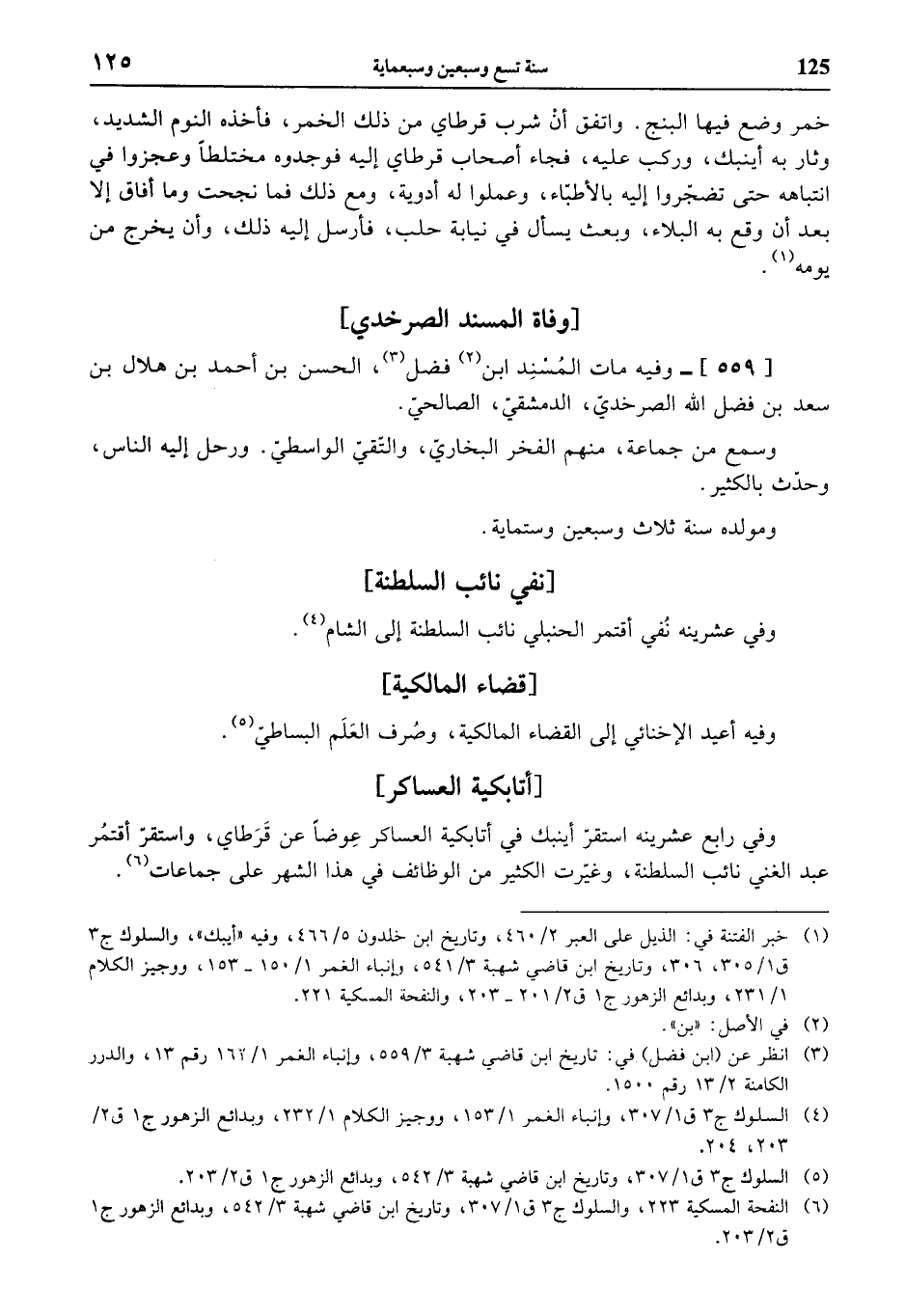 (¬6) النفحة المسكية 223، والسلوك ج 3 ق 1/ 307، وتاريخ ابن قاضي شهبة 3/ 542، وبدائع الزهور ج 1 ق 2/ 203.