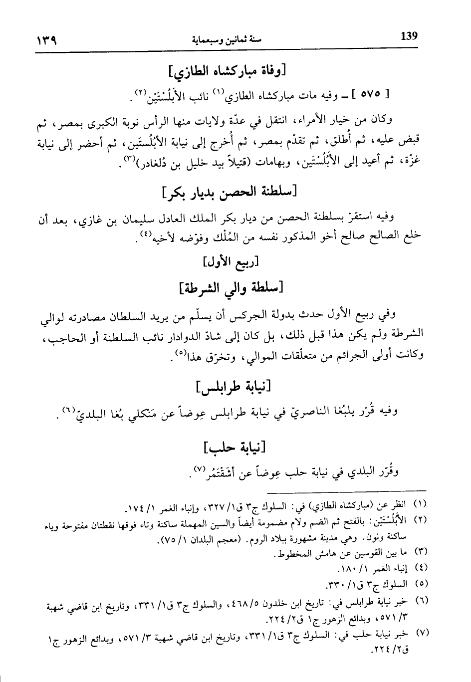 [575]- وفيه مات مباركشاه الطازي (¬1) نائب الأبلستين (¬2).