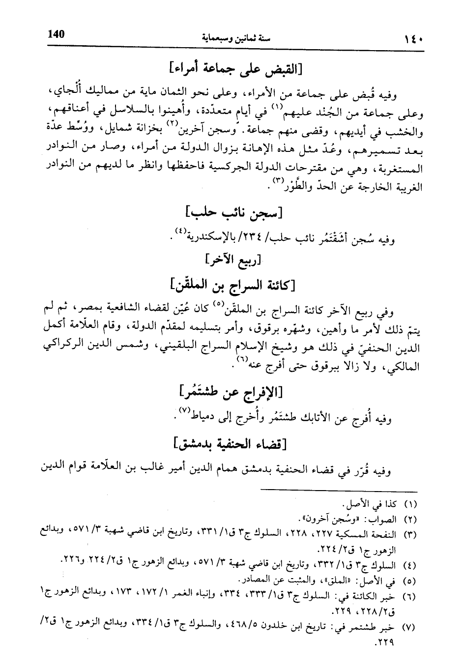 (¬7) خبر طشتمر في: تاريخ ابن خلدون 5/ 468، والسلوك ج 3 ق 1/ 334، وبدائع الزهور ج 1 ق 2/ 229.