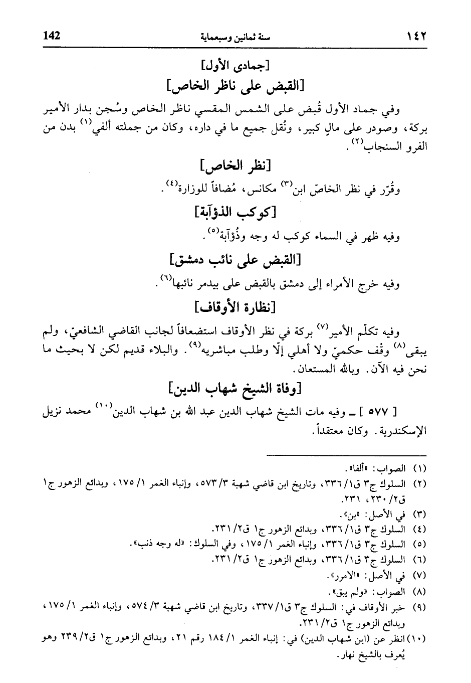 (¬10) انظر عن (ابن شهاب الدين) في: إنباء الغمر 1/ 184 رقم 21، وبدائع الزهور ج 1 ق 2/ 239 وهو يعرف بالشيخ نهار.