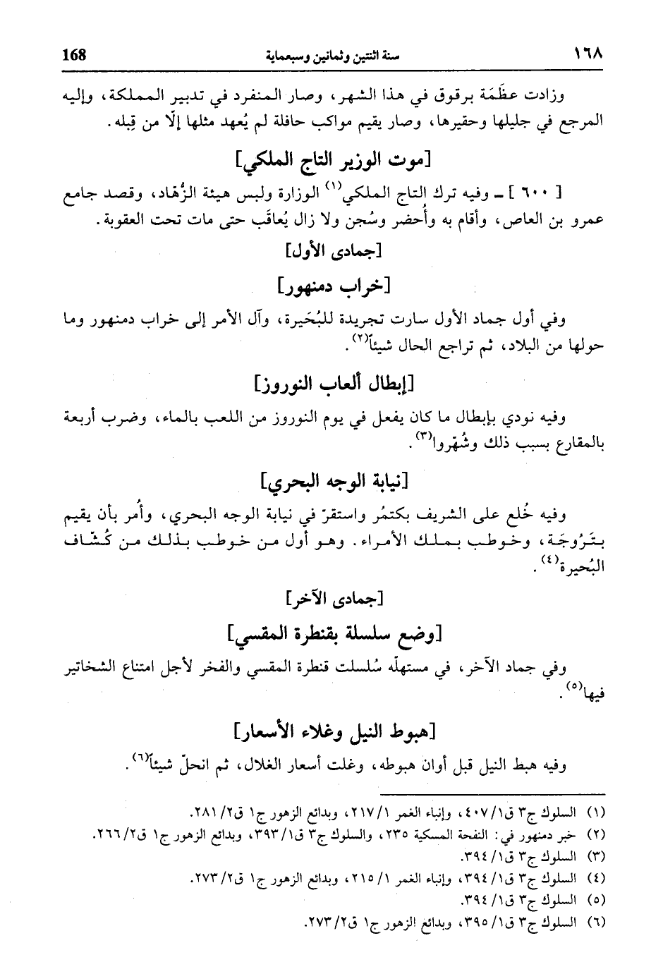 (¬6) السلوك ج 3 ق 1/ 395، وبدائع الزهور ج 1 ق 2/ 273.