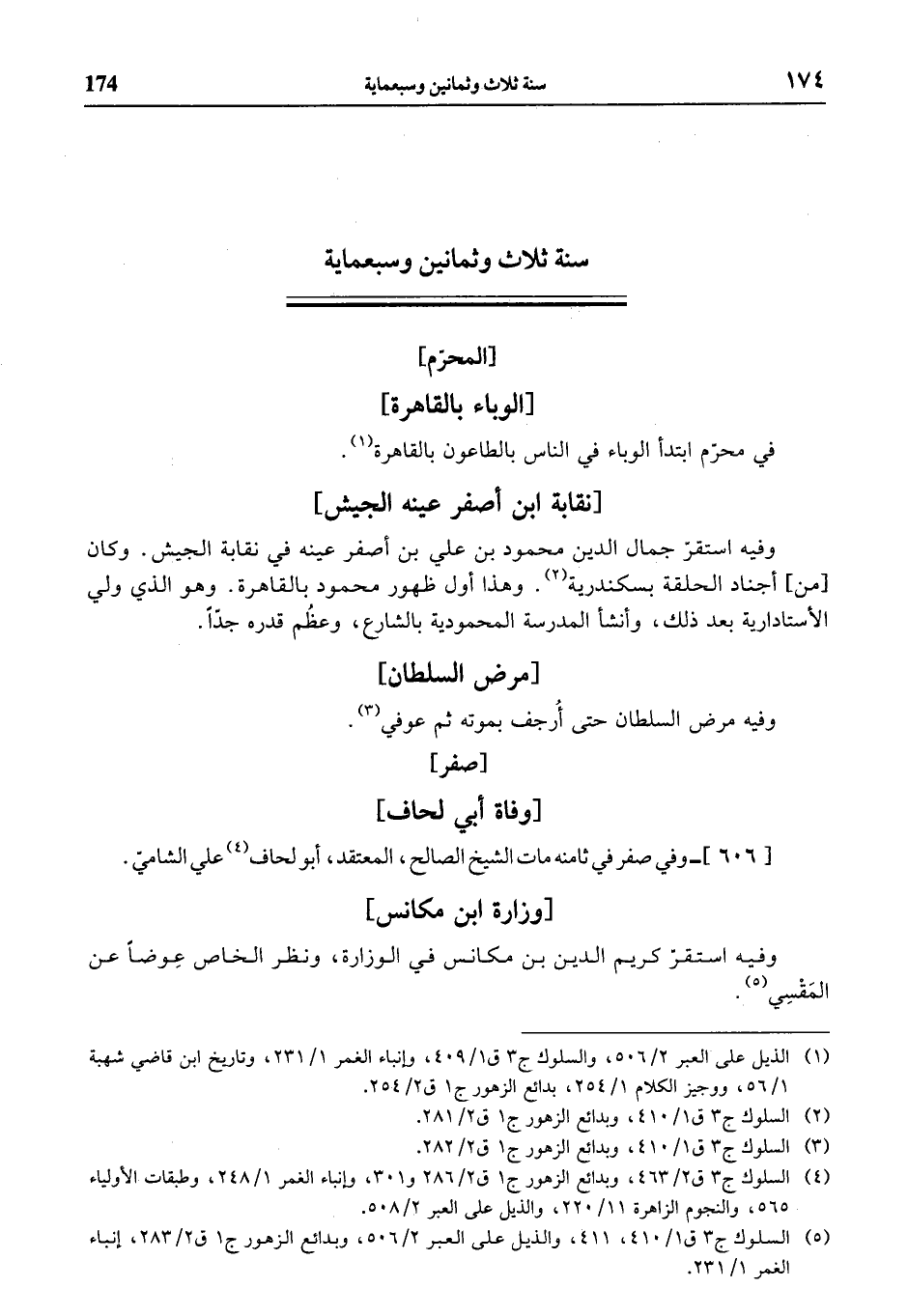 (¬5) السلوك ج 3 ق 1/ 410، 411، والذيل على العبر 2/ 506، وبدائع الزهور ج 1 ق 2/ 283، إنباء الغمر 1/ 231.