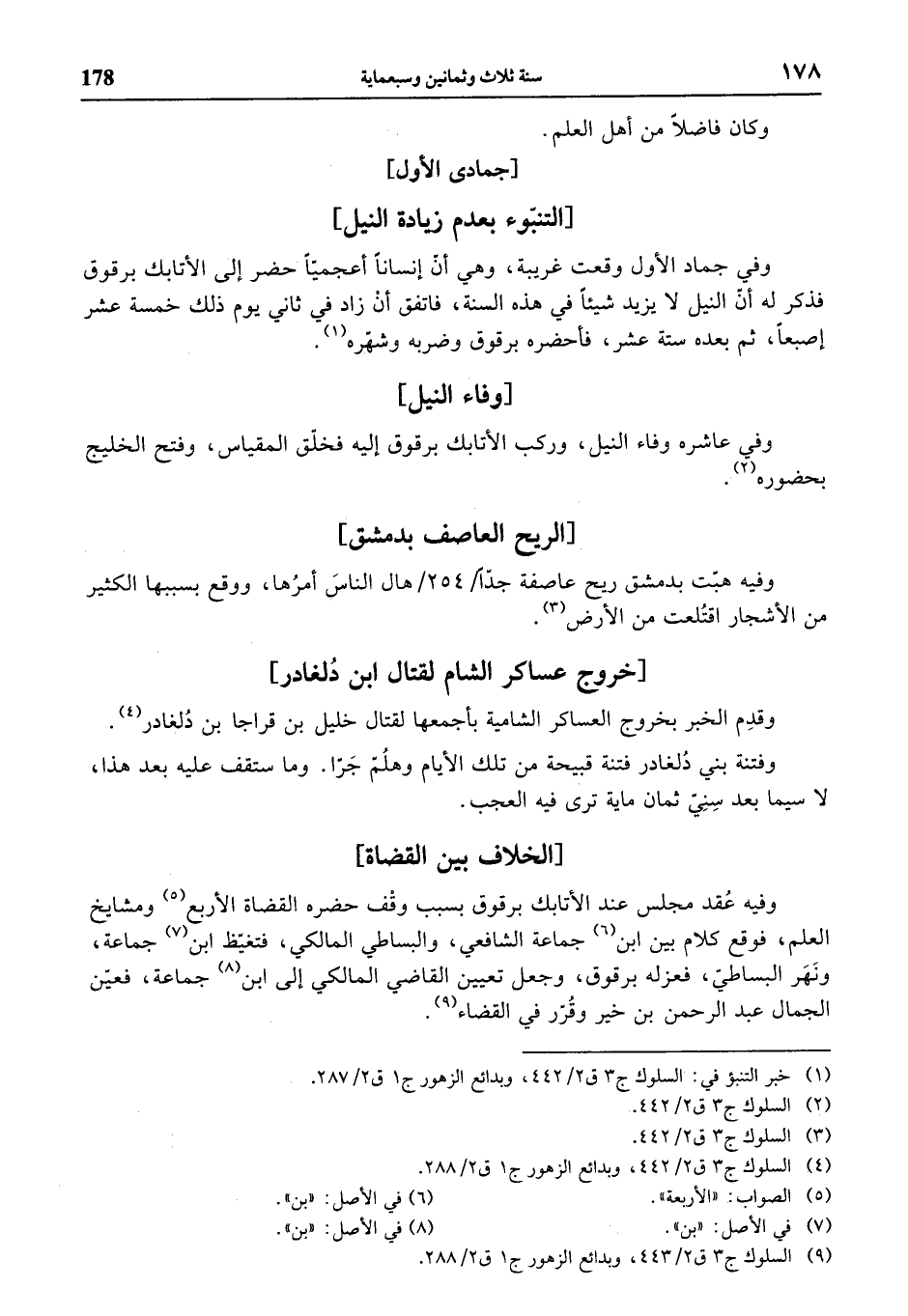 وفتنة بني دلغادر فتنة قبيحة من تلك الأيام وهلمّ جرّا. وما ستقف عليه بعد هذا، لا سيما بعد سنيّ ثمان ماية ترى فيه العجب.