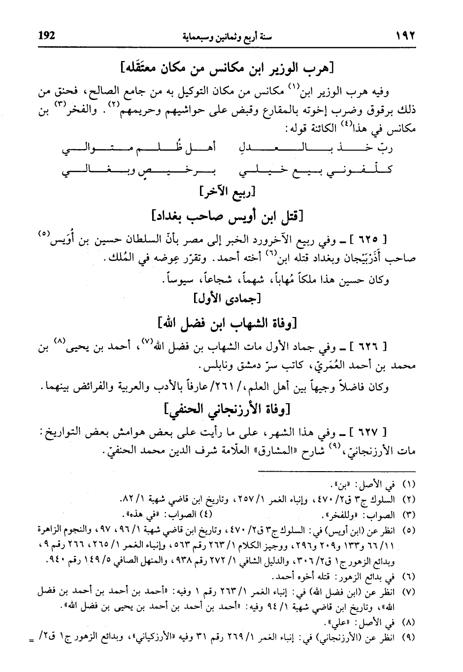 (¬7) انظر عن (ابن فضل الله) في: إنباء الغمر 1/ 263 رقم 1 وفيه: «أحمد بن أحمد بن أحمد بن فضل الله»، وتاريخ ابن قاضي شهبة 1/ 94 وفيه: «أحمد بن أحمد بن أحمد بن يحيى بن فضل الله».