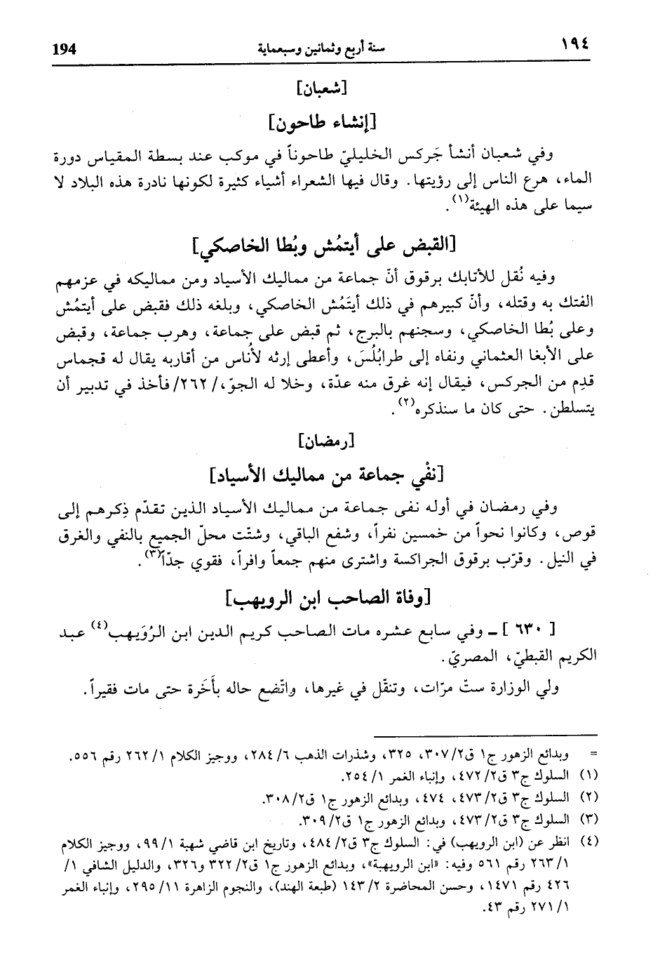 (¬4) انظر عن (ابن الرويهب) في: السلوك ج 3 ق 2/ 484، وتاريخ ابن قاضي شهبة 1/ 99، ووجيز الكلام 1/ 263 رقم 561 وفيه: «ابن الرويهبة»، وبدائع الزهور ج 1 ق 2/ 322 و 326، والدليل الشافي 1/ 426 رقم 1471، وحسن المحاضرة 2/ 143 (طبعة الهند)، والنجوم الزاهرة 11/ 295، وإنباء الغمر 1/ 271 رقم 43.