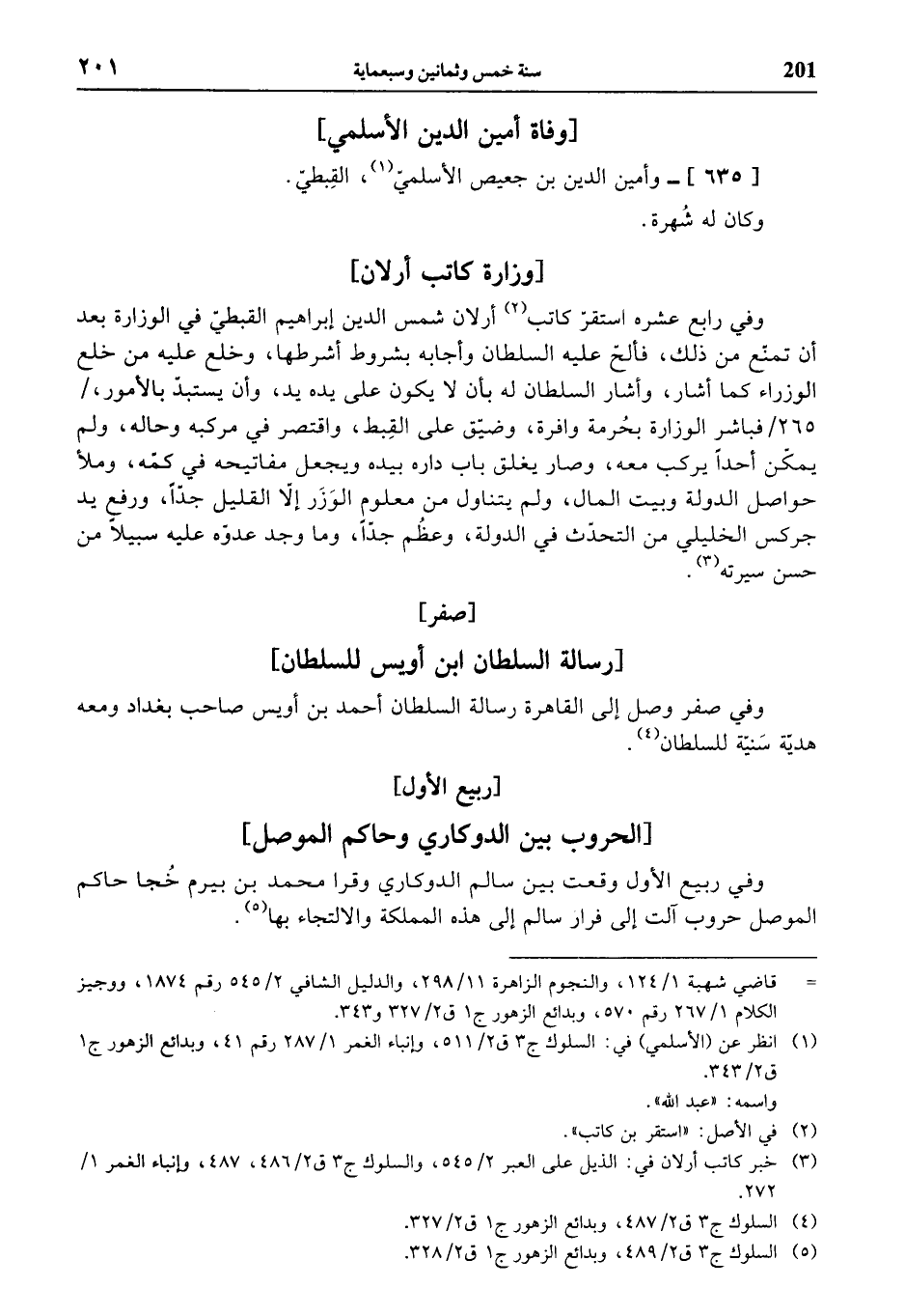 (¬3) خبر كاتب أرلان في: الذيل على العبر 2/ 545، والسلوك ج 3 ق 2/ 486، 487، وإنباء الغمر 1/ 272.