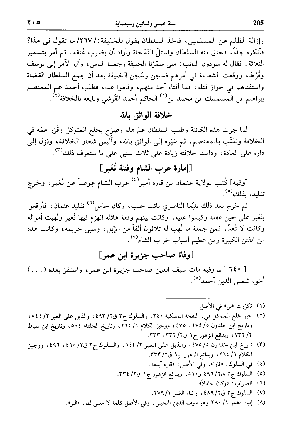 (¬3) تاريخ ابن خلدون 5/ 475، والذيل على العبر 2/ 544، والسلوك ج 3 ق 2/ 495، 496، ووجيز الكلام 1/ 264، وبدائع الزهور ج 1 ق 2/ 333.
