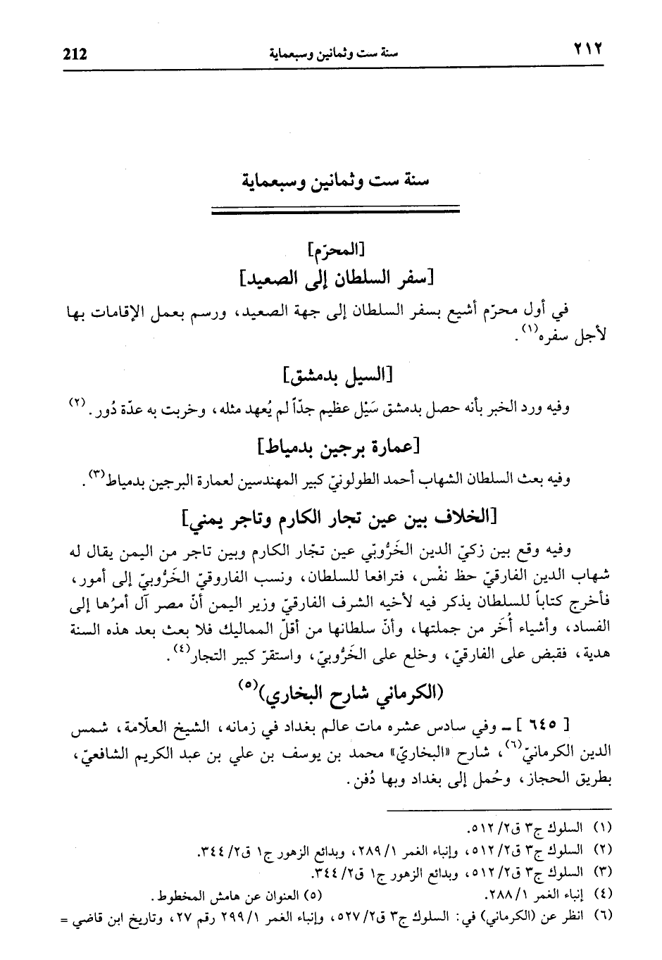 (¬6) انظر عن (الكرماني) في: السلوك ج 3 ق 2/ 527، وإنباء الغمر 1/ 299 رقم 27، وتاريخ ابن قاضي =