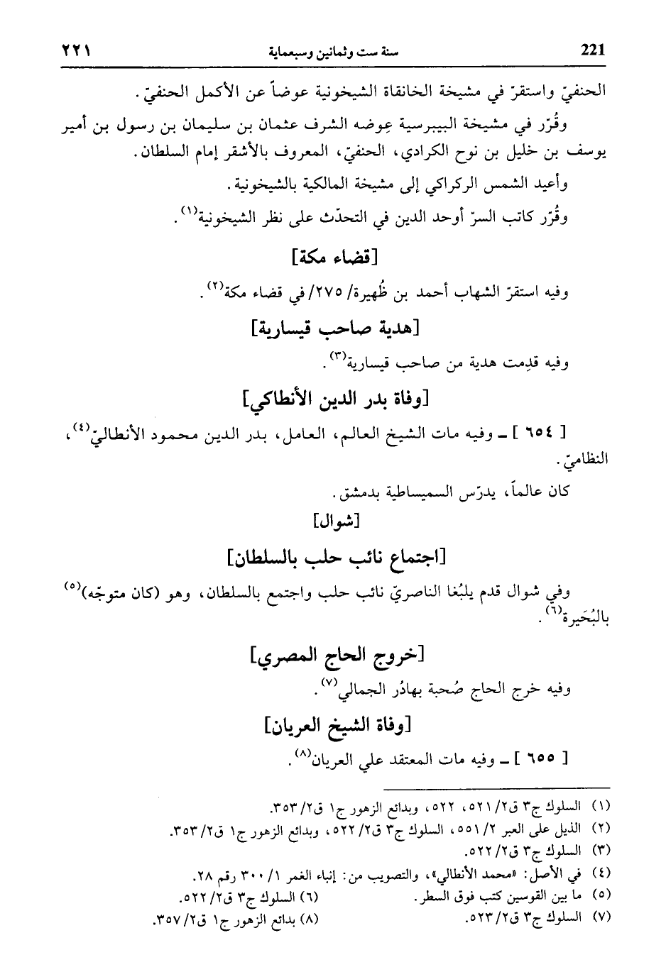 (¬1) السلوك ج 3 ق 2/ 521، 522، وبدائع الزهور ج 1 ق 2/ 353.