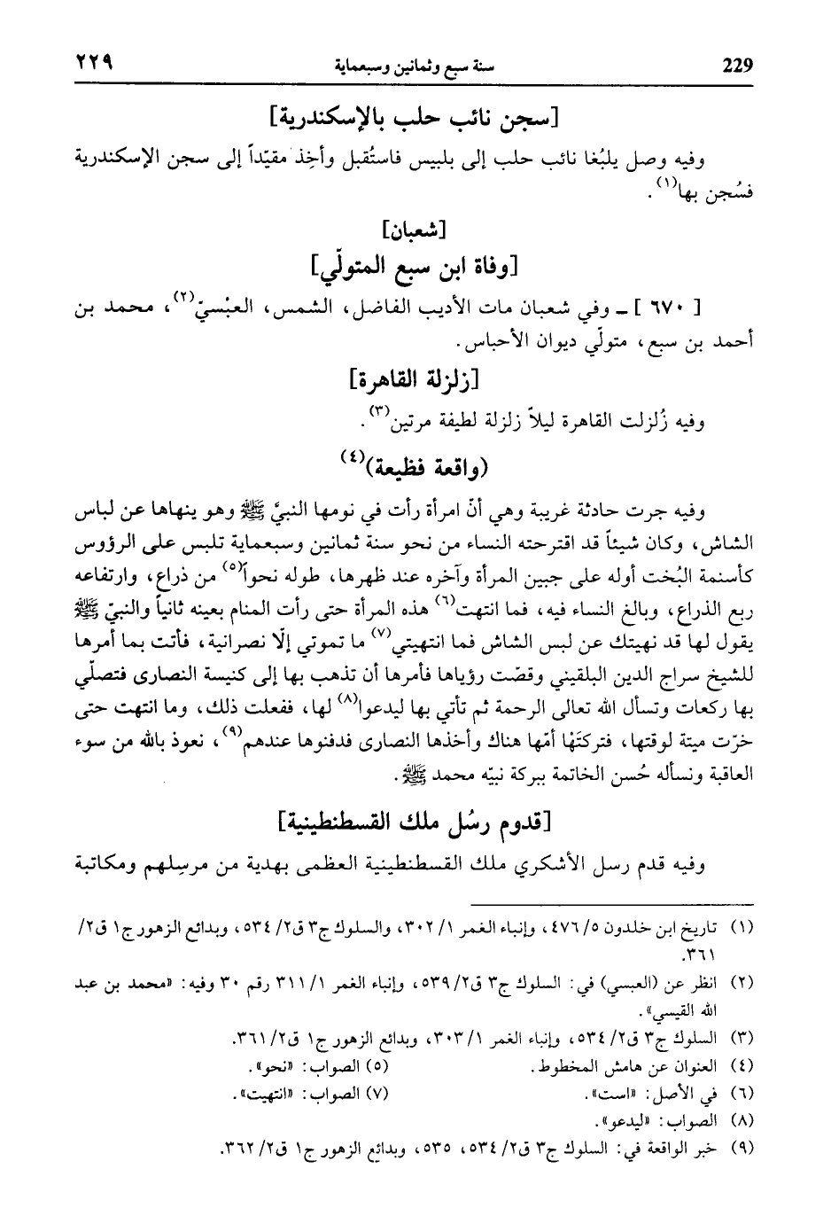 (¬9) خبر الواقعة في: السلوك ج 3 ق 2/ 534، 535، وبدائع الزهور ج 1 ق 2/ 362.