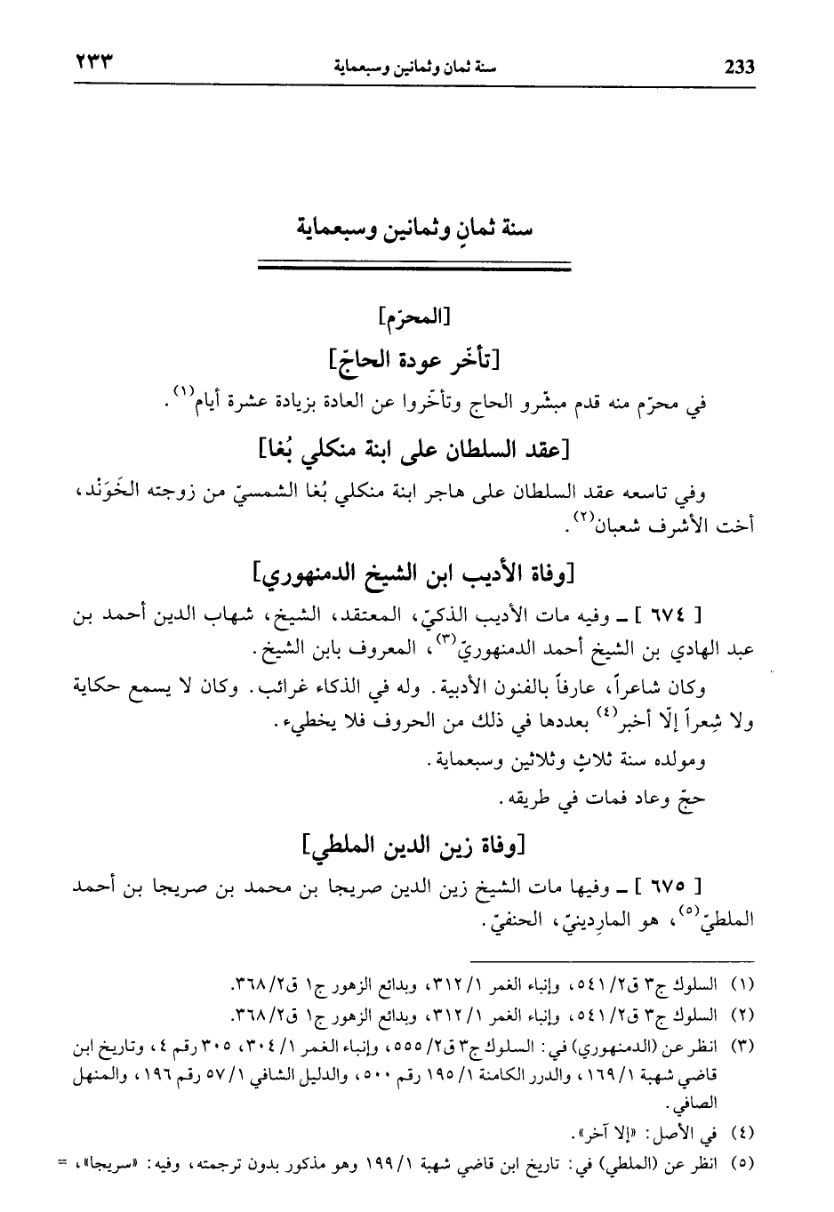 (¬3) انظر عن (الدمنهوري) في: السلوك ج 3 ق 2/ 555، وإنباء الغمر 1/ 304، 305 رقم 4، وتاريخ ابن قاضي شهبة 1/ 169، والدرر الكامنة 1/ 195 رقم 500، والدليل الشافي 1/ 57 رقم 196، والمنهل الصافي.