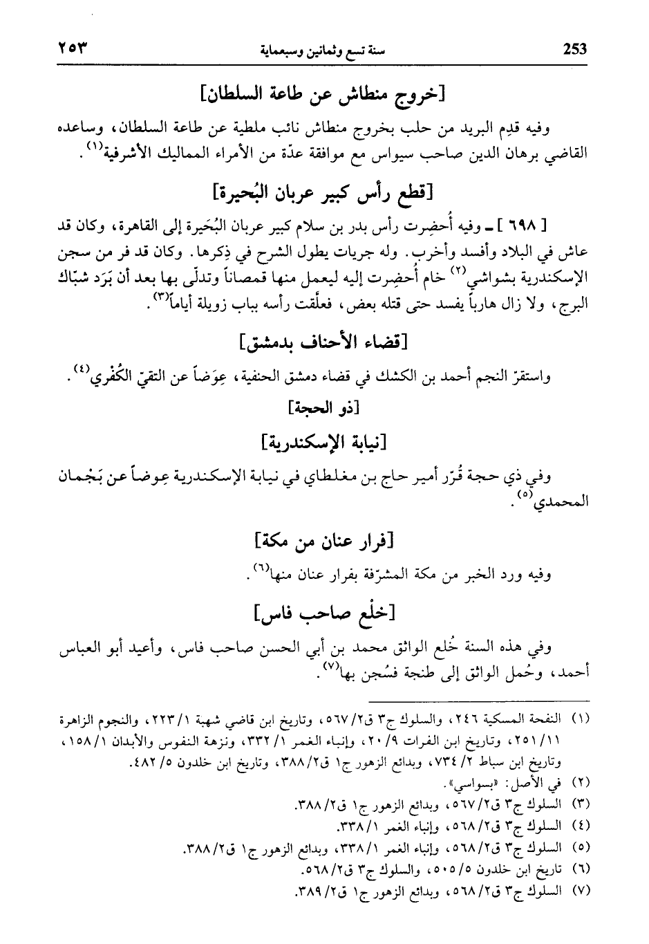 (¬6) تاريخ ابن خلدون 5/ 505، والسلوك ج 3 ق 2/ 568.