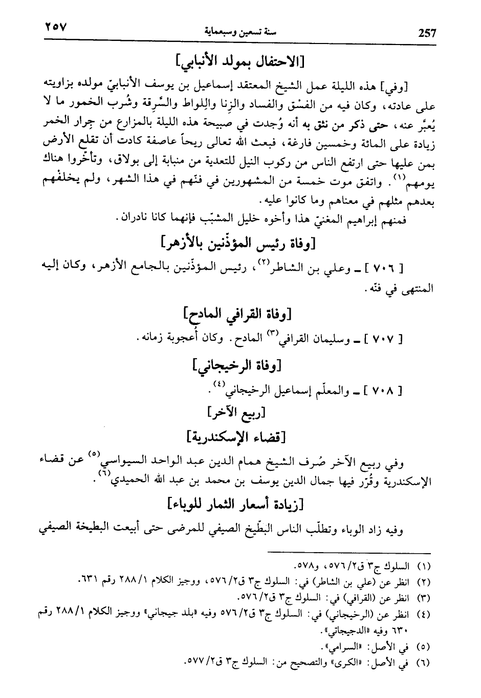 (¬3) انظر عن (القرافي) في: السلوك ج 3 ق 2/ 576.