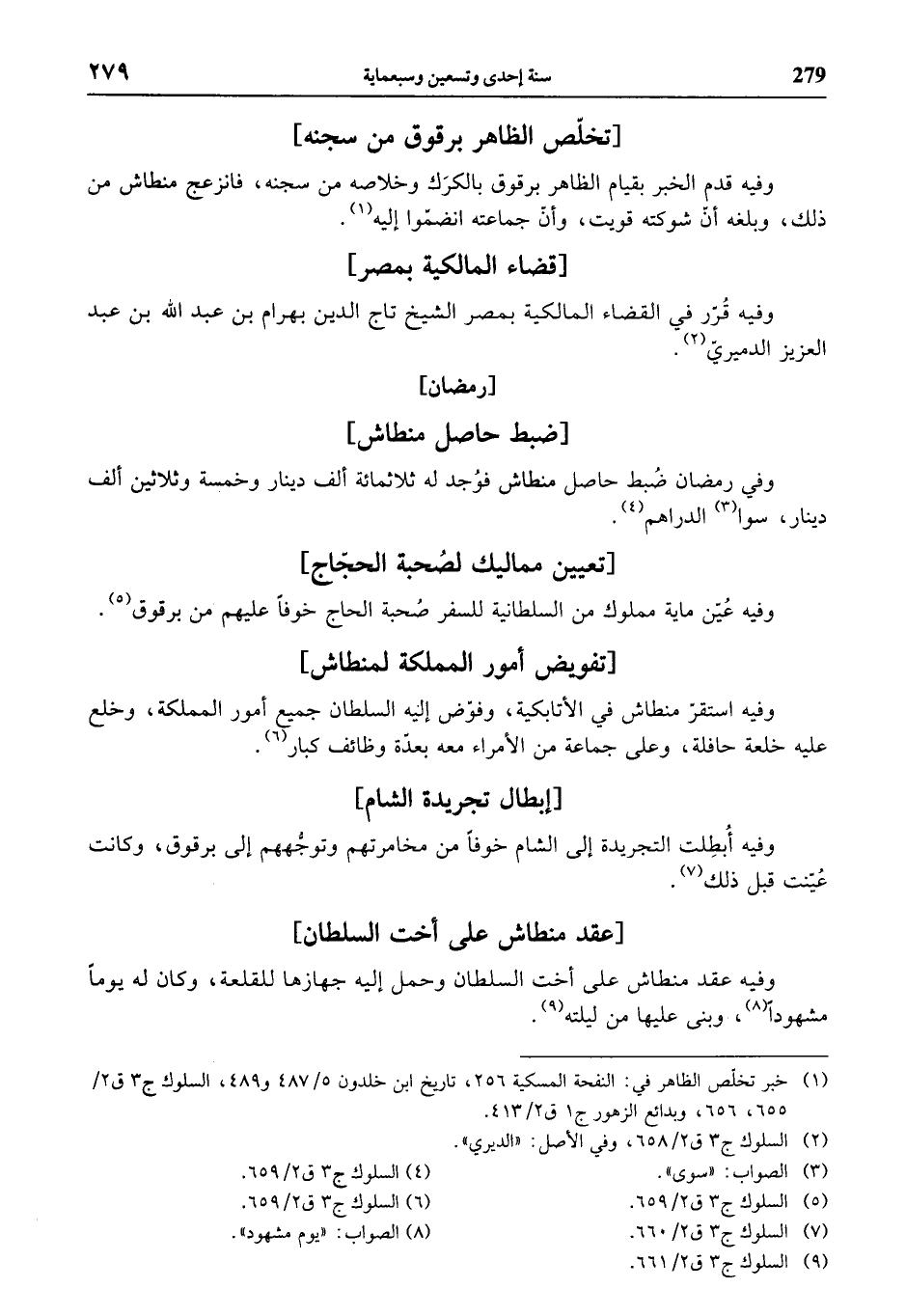 (¬1) خبر تخلّص الظاهر في: النفحة المسكية 256، تاريخ ابن خلدون 5/ 487 و 489، السلوك ج 3 ق 2/ 655، 656، وبدائع الزهور ج 1 ق 2/ 413.