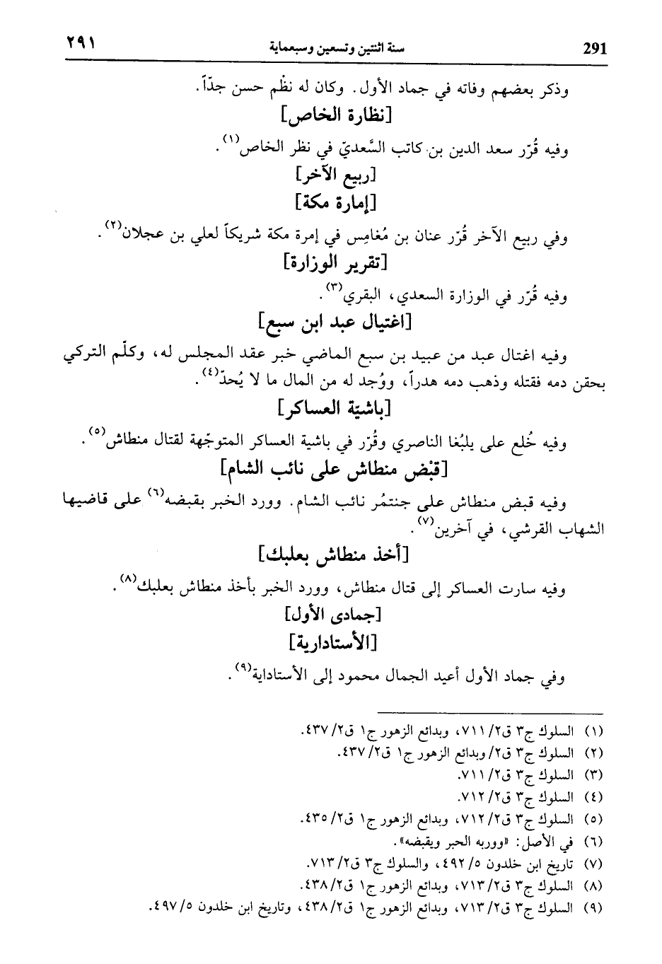 وفيه اغتال عبد من عبيد بن سبع الماضي خبر عقد المجلس له، وكلّم التركي بحقن دمه فقتله وذهب دمه هدرا، ووجد له من المال ما لا يحدّ (¬4).
