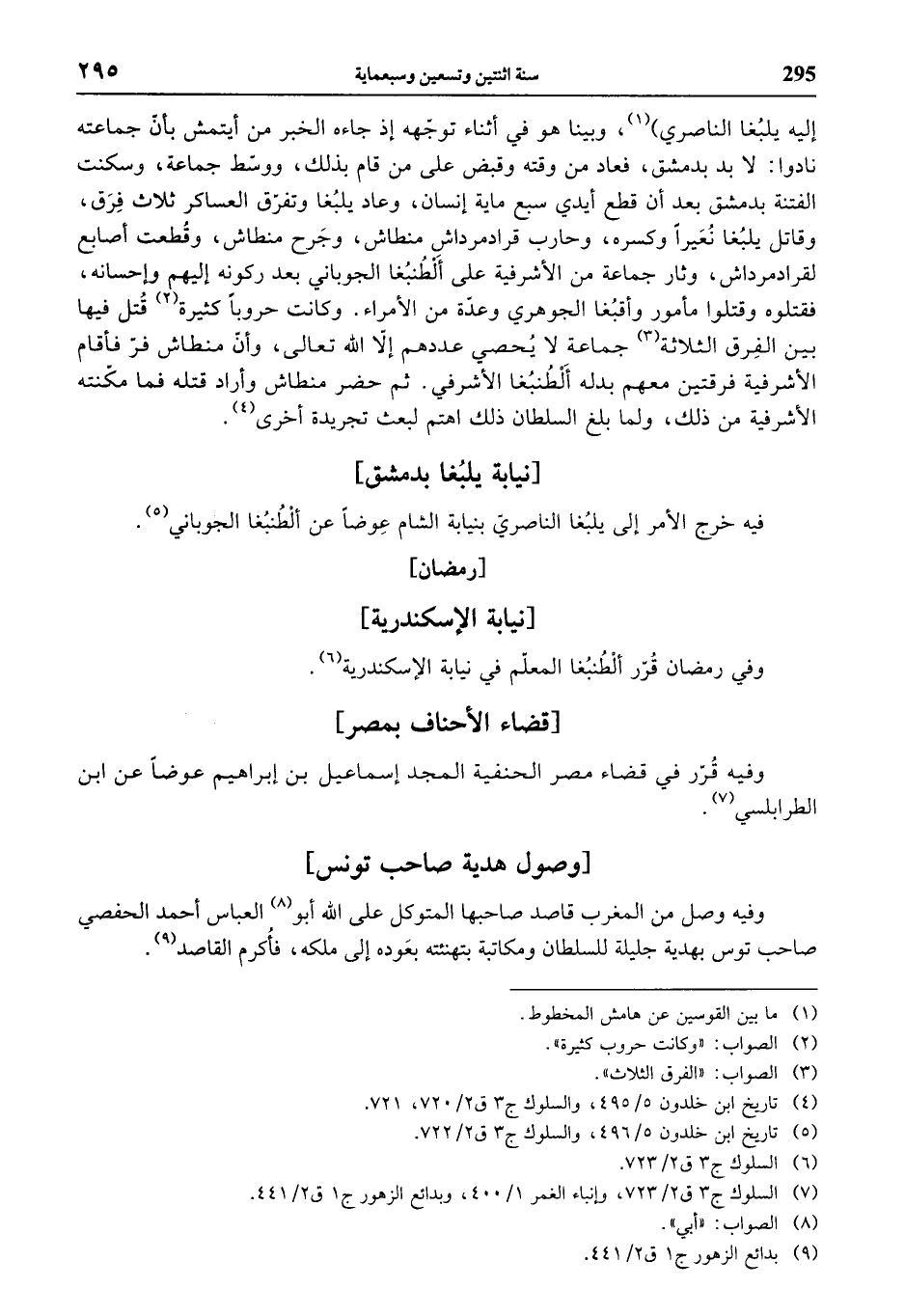 (¬4) تاريخ ابن خلدون 5/ 495، والسلوك ج 3 ق 2/ 720، 721.
