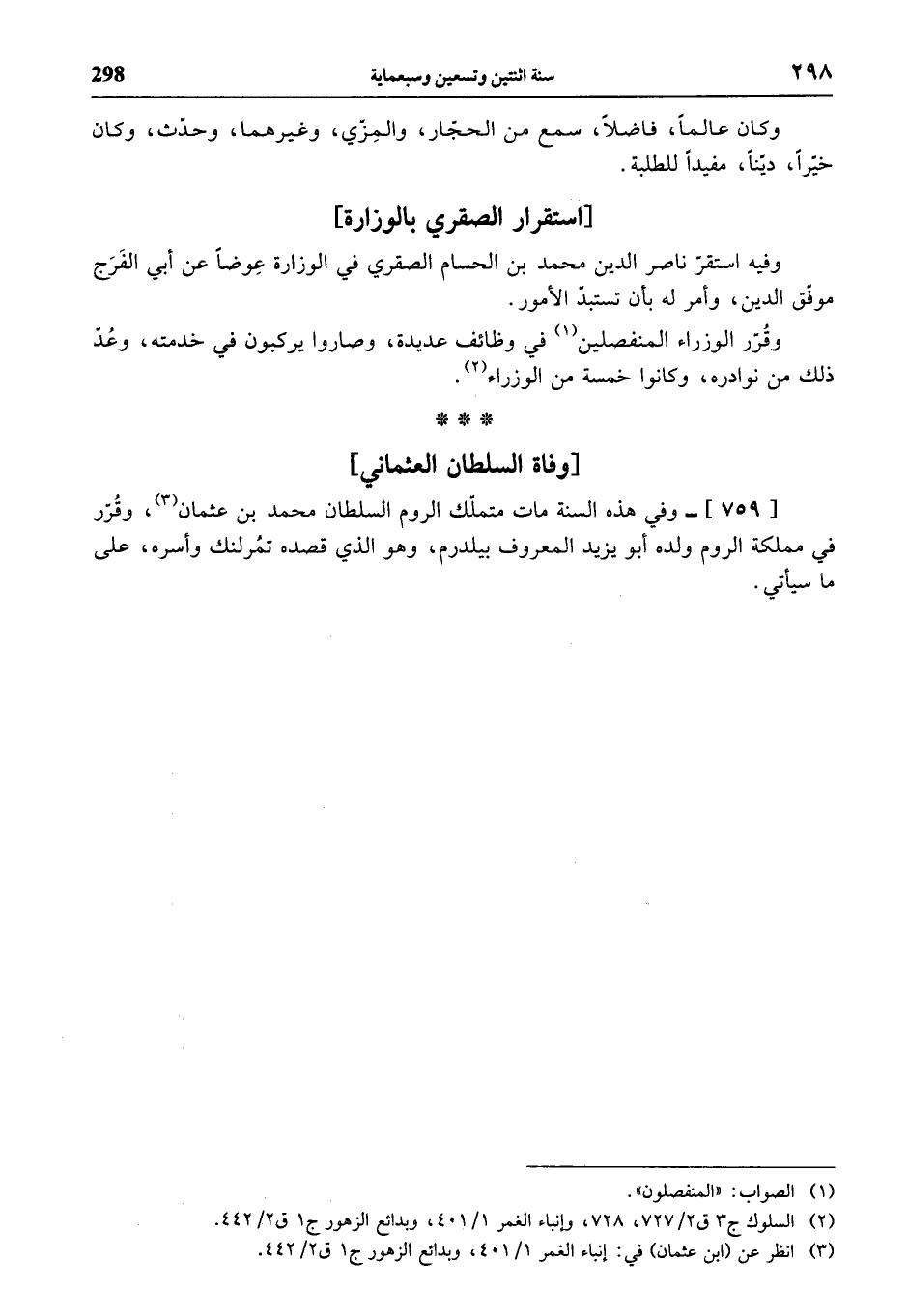 (¬3) انظر عن (ابن عثمان) في: إنباء الغمر 1/ 401، وبدائع الزهور ج 1 ق 2/ 442.