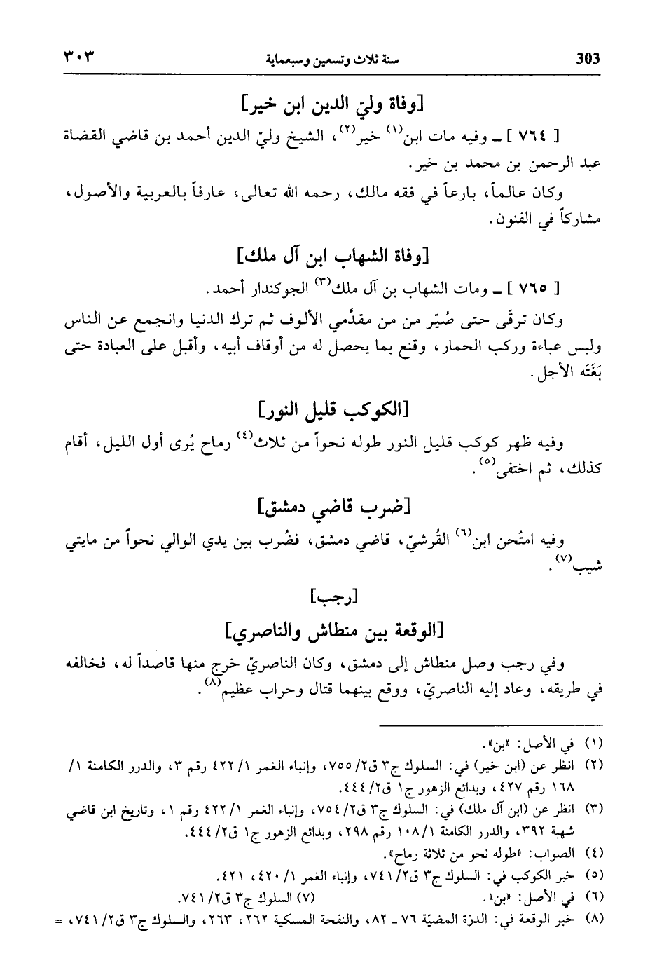 (¬5) خبر الكوكب في: السلوك ج 3 ق 2/ 741، وإنباء الغمر 1/ 420، 421.