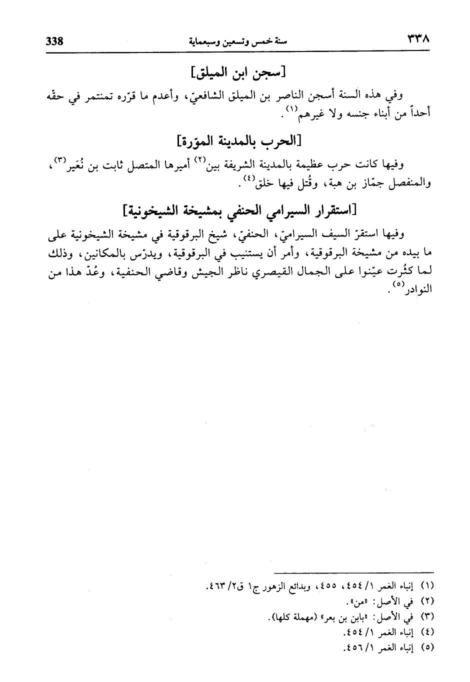 (¬1) إنباء الغمر 1/ 454، 455، وبدائع الزهور ج 1 ق 2/ 463.