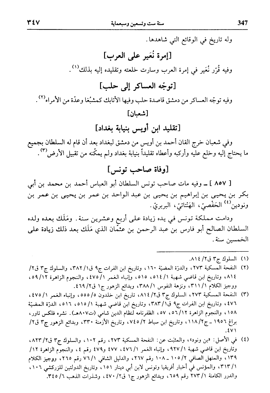 وفيه قرّر نعير في إمرة العرب وسارت خلعته وتقليده إليه بذلك (¬1).