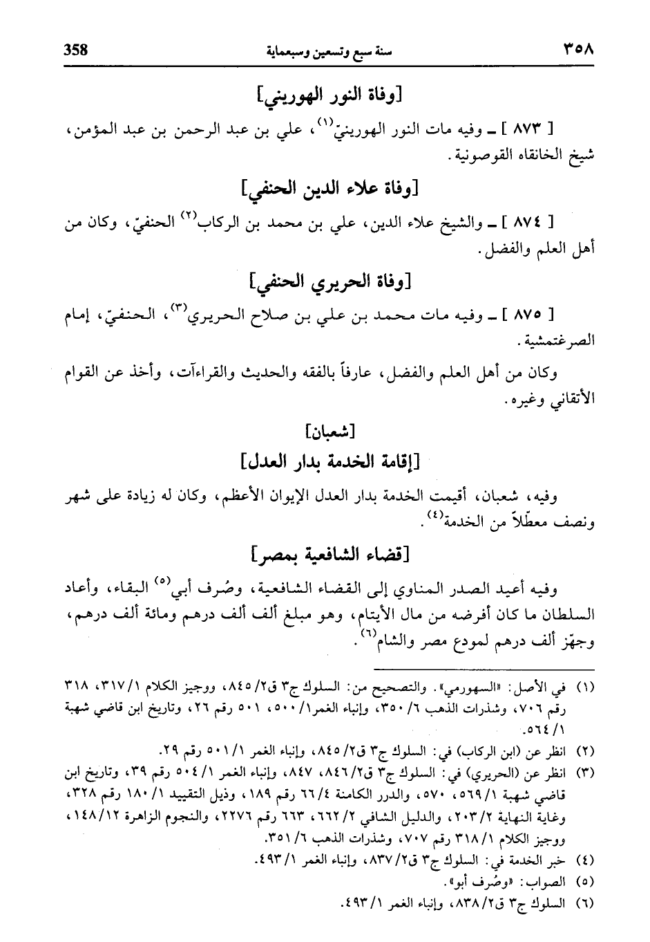 (¬6) السلوك ج 3 ق 2/ 838، وإنباء الغمر 1/ 493.