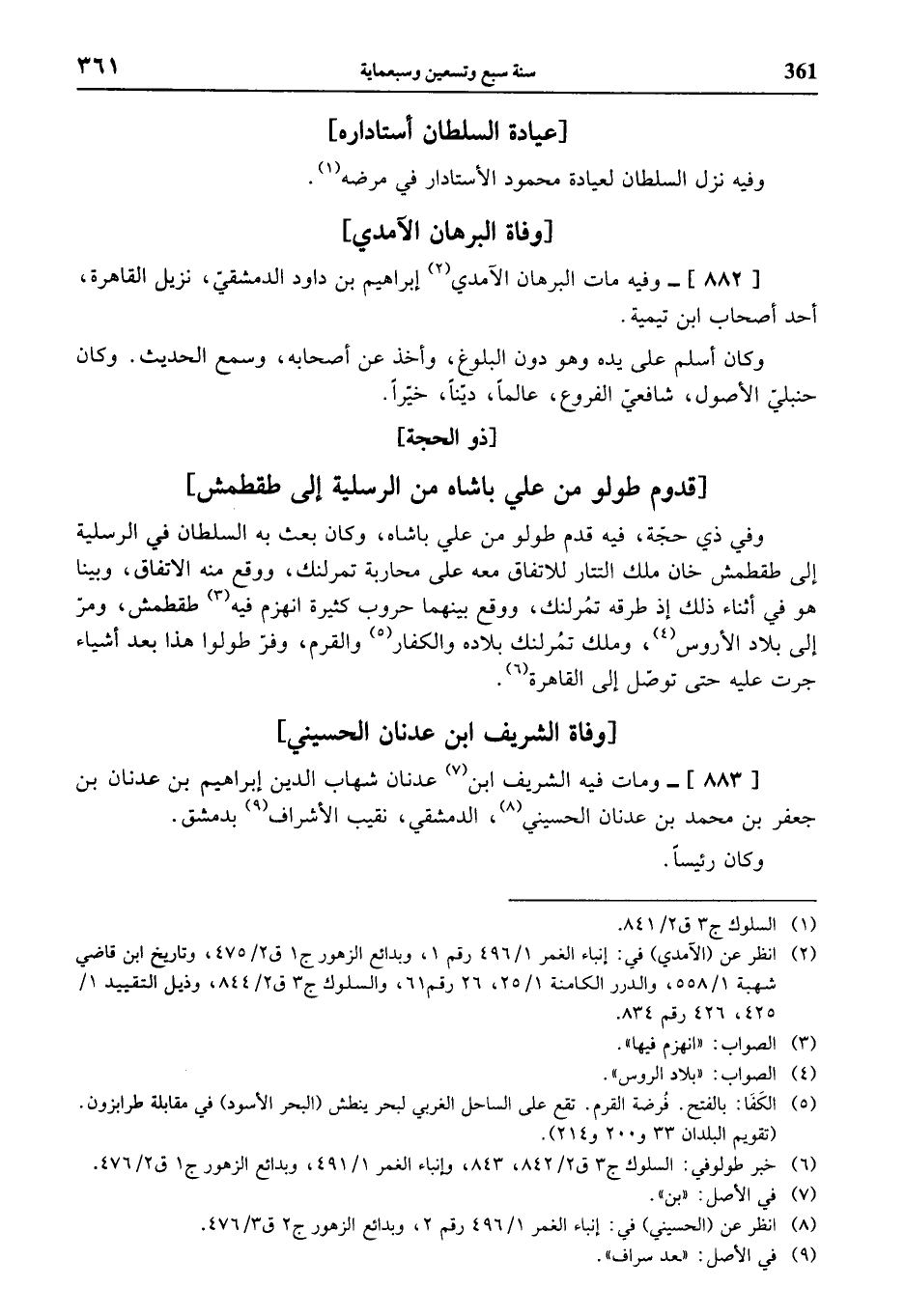(¬8) انظر عن (الحسيني) في: إنباء الغمر 1/ 496 رقم 2، وبدائع الزهور ج 1 ق 3/ 476.