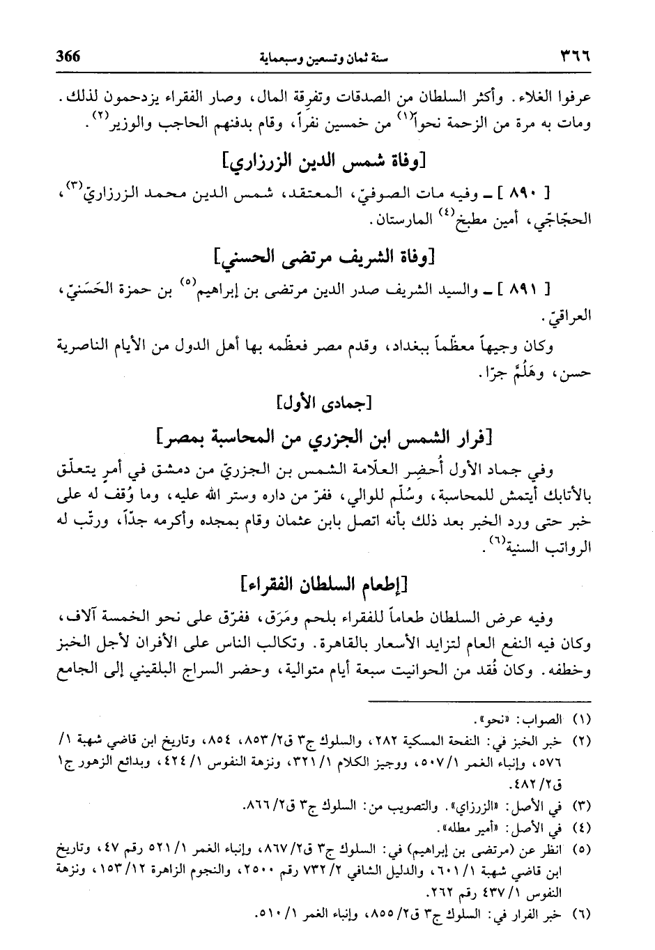 [890]- وفيه مات الصوفيّ، المعتقد، شمس الدين محمد الزرزاريّ (¬3)، الحجّاجّي، أمين مطبخ (¬4) المارستان.