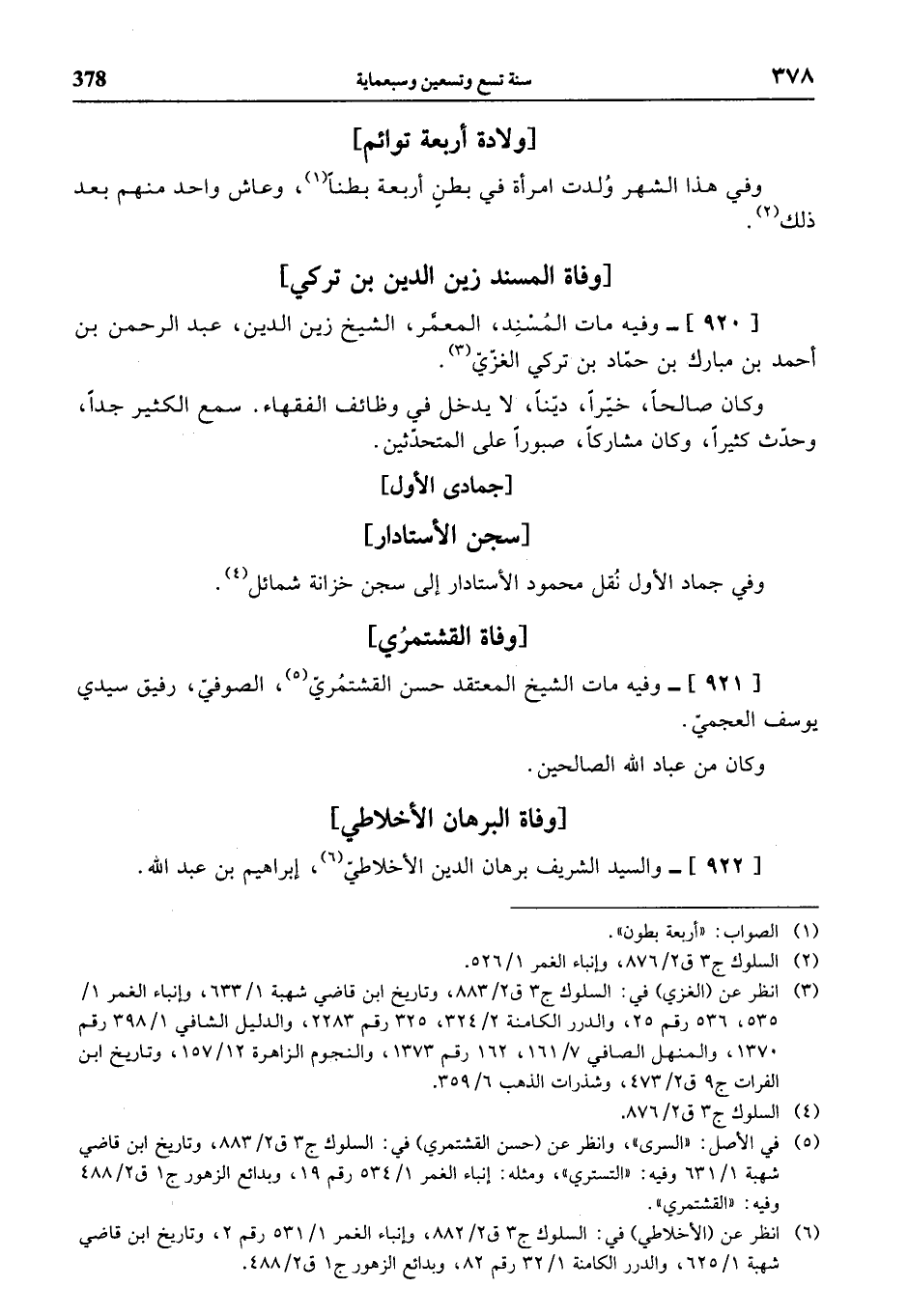 (¬5) في الأصل: «السرى»، وانظر عن (حسن القشتمري) في: السلوك ج 3 ق 2/ 883، وتاريخ ابن قاضي شهبة 1/ 631 وفيه: «التستري»، ومثله: إنباء الغمر 1/ 534 رقم 19، وبدائع الزهور ج 1 ق 2/ 488 وفيه: «القشتمري».