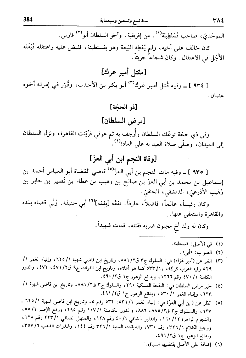 (¬3) انظر عن (أمير عرك) في: السلوك ج 3 ق 2/ 881، وتاريخ ابن قاضي شهبة 1/ 625، وإنباء الغمر 1/ 529 وفيه «عرب كرك»، و 1/ 533 كما هو أعلاه، وتاريخ ابن الفرات ج 9 ق 2/ 471، 472، والدرر الكامنة 1/ 470 رقم 1266، وبدائع الزهور ج 1 ق 2/ 490.
