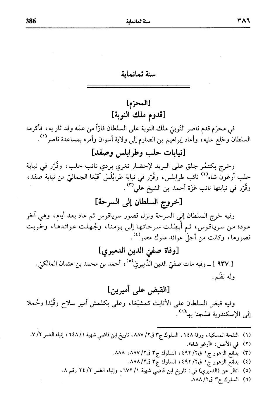 (¬4) بدائع الزهور ج 1 ق 2/ 492، السلوك ج 3 ق 2/ 888.