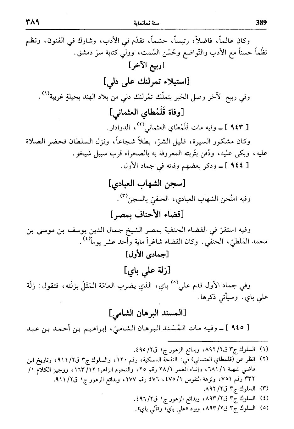 (¬4) السلوك ج 3 ق 2/ 893، وبدائع الزهور ج 1 ق 2/ 496.
