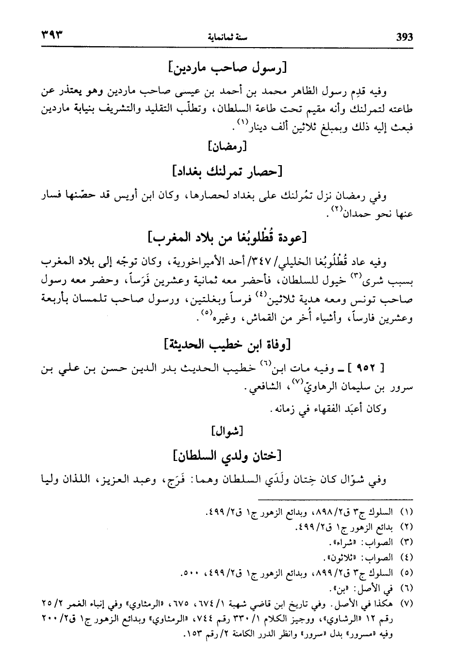 (¬5) السلوك ج 3 ق 2/ 899، وبدائع الزهور ج 1 ق 2/ 499، 500.