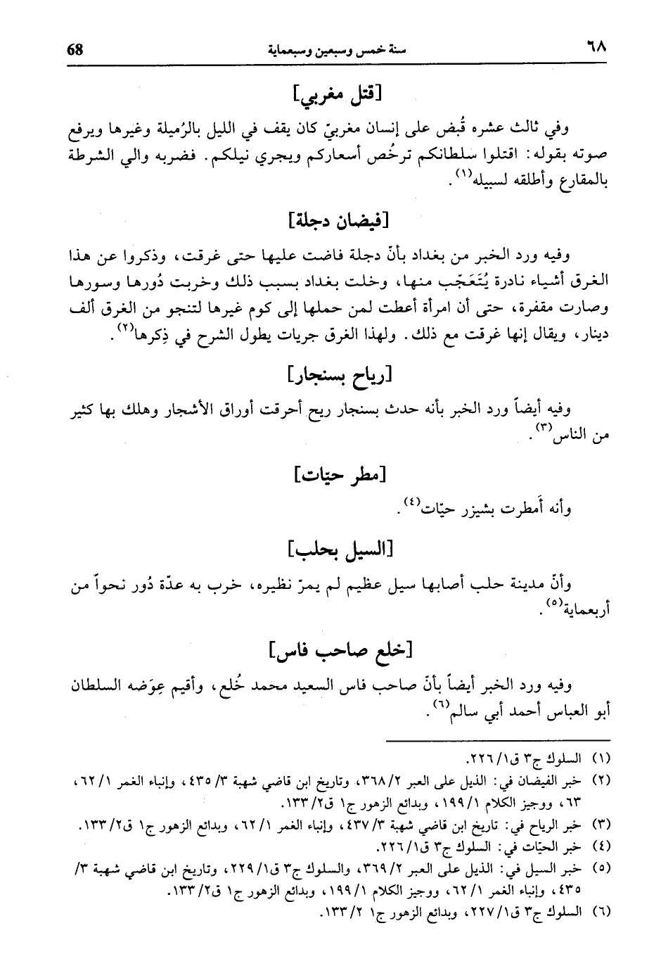 (¬5) خبر السيل في: الذيل على العبر 2/ 369، والسلوك ج 3 ق 1/ 229، وتاريخ ابن قاضي شهبة 3/ 435، وإنباء الغمر 1/ 62، ووجيز الكلام 1/ 199، وبدائع الزهور ج 1 ق 2/ 133.