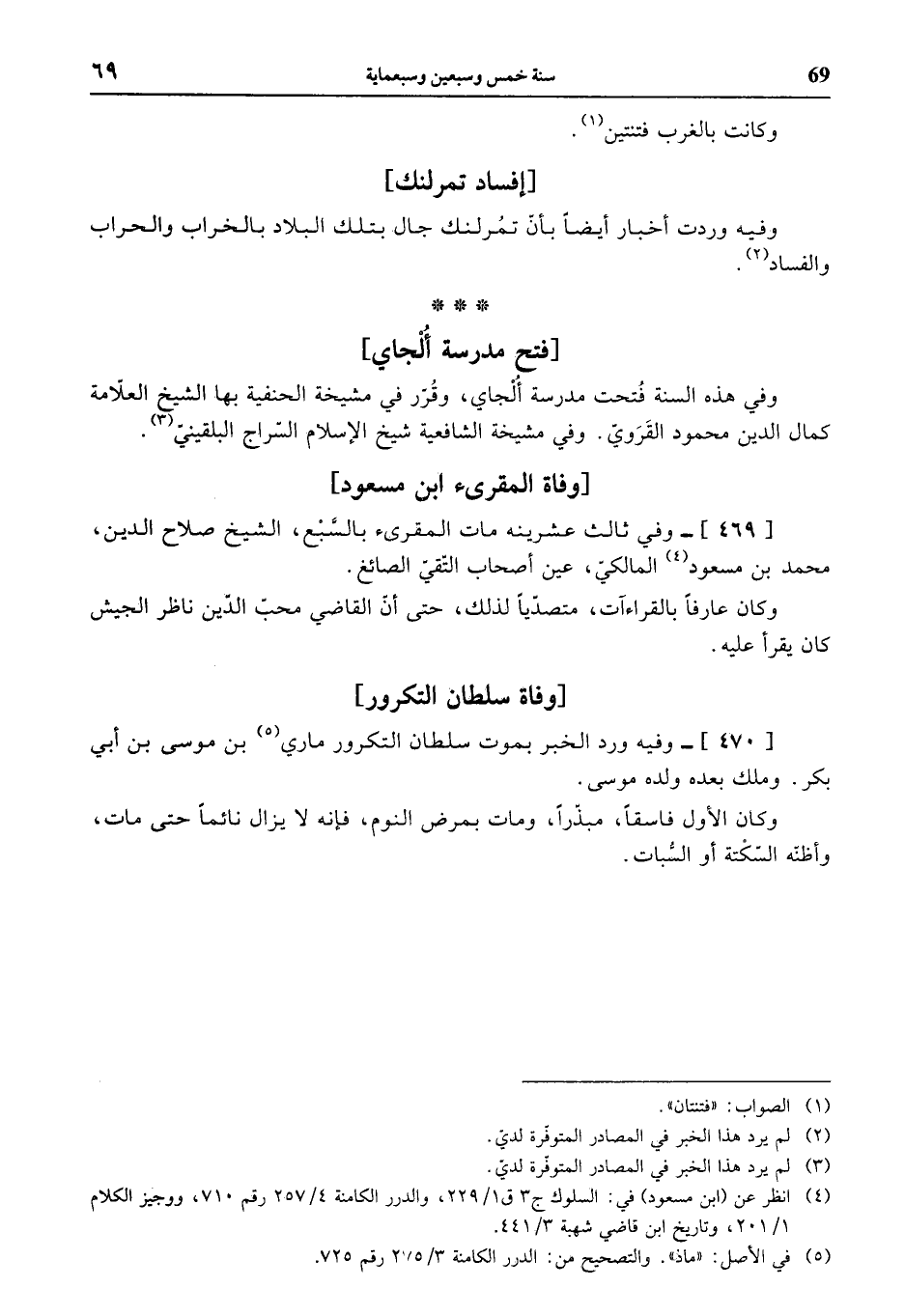 (¬4) انظر عن (ابن مسعود) في: السلوك ج 3 ق 1/ 229، والدرر الكامنة 4/ 257 رقم 710، ووجيز الكلام 1/ 201، وتاريخ ابن قاضي شهبة 3/ 441.