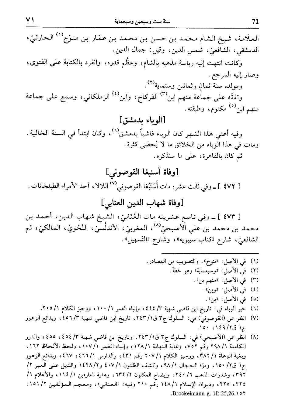(¬8) انظر عن (الأصبحي) في: السلوك ج 3 ق 1/ 243، وتاريخ ابن قاضي شهبة 3/ 454، 455، والدرر الكامنة 1/ 298 رقم 752، وغاية النهاية 1/ 128، وإنباء الغمر 1/ 107، ولحظ الألحاظ 162، وبغية الوعاة 1/ 382، ووجيز الكلام 1/ 207 رقم 431، والدارس 1/ 466، 467، وبدائع الزهور ج 1 ق 2/ 150، ودرّة الحجال 1/ 98، وكشف الظنون 1/ 407 و 2/ 1428 والذيل على العبر 2/ 392، وشذرات الذهب 6/ 240، وإيضاح المكنون 2/ 634، وهدية العارفين 1/ 114، والأعلام 1/ 224، 225، وديوان الإسلام 1/ 148 رقم 210 وفيه: «العناني»، ومعجم المؤلفين 2/ 151 - 152، Brockelmann - g .11 : 52,26 .