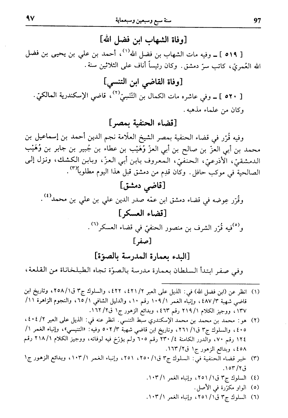 (¬6) السلوك ج 3 ق 1/ 251، وإنباء الغمر 1/ 103.