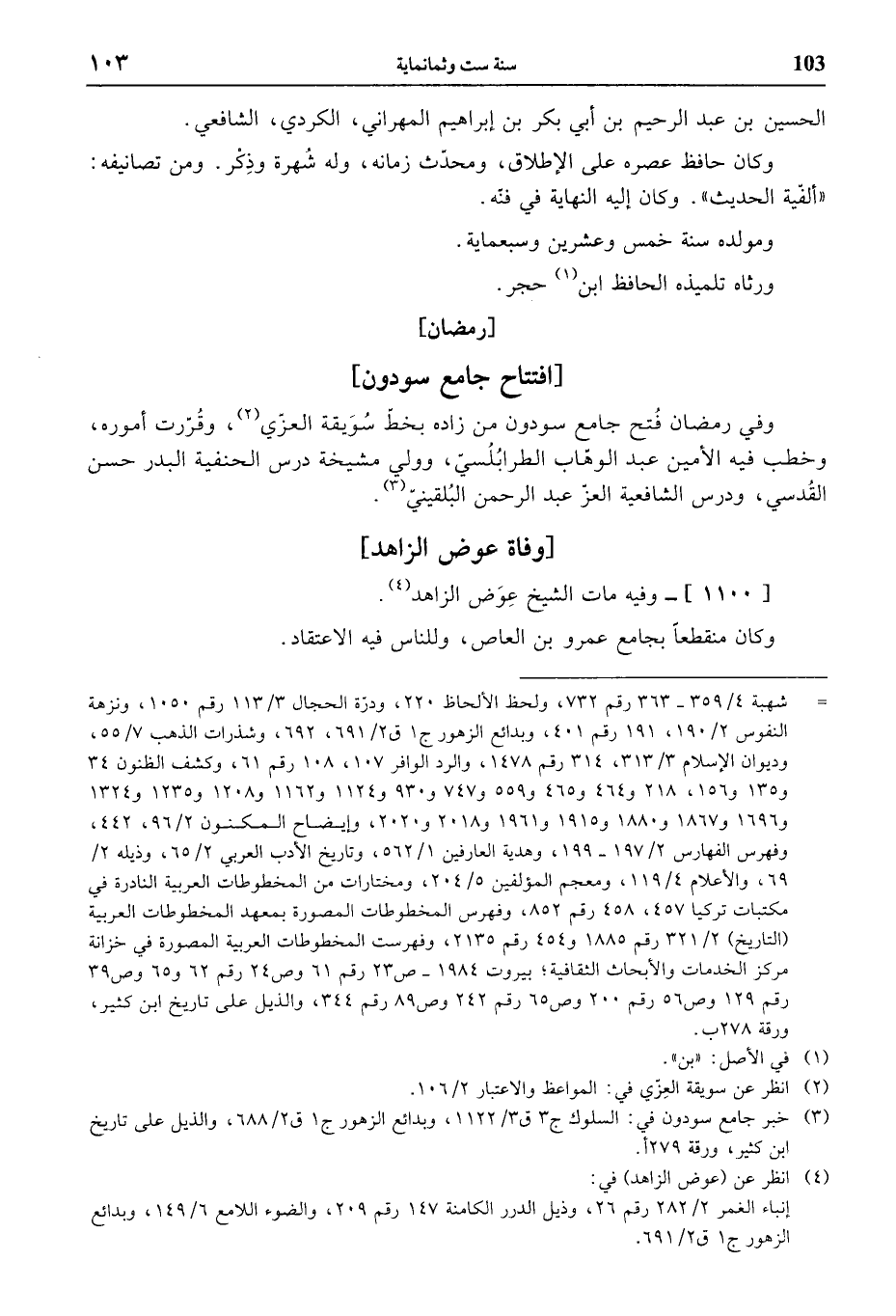 [1100]- وفيه مات الشيخ عوض الزاهد (¬4).