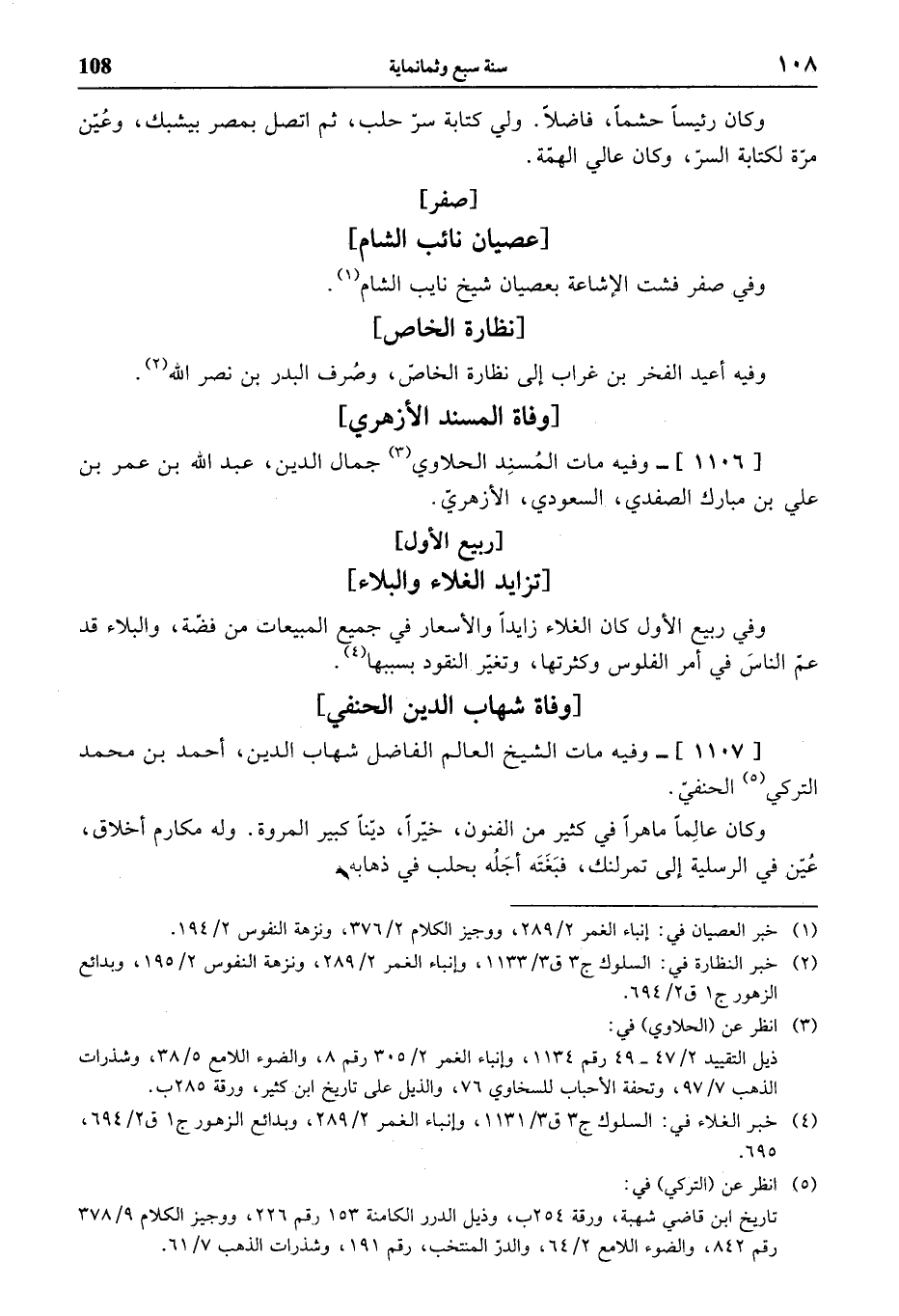 (¬5) انظر عن (التركي) في: تاريخ ابن قاضي شهبة، ورقة 254 ب، وذيل الدرر الكامنة 153 رقم 226، ووجيز الكلام 9/ 378 رقم 842، والضوء اللامع 2/ 64، والدرّ المنتخب، رقم 191، وشذرات الذهب 7/ 61.