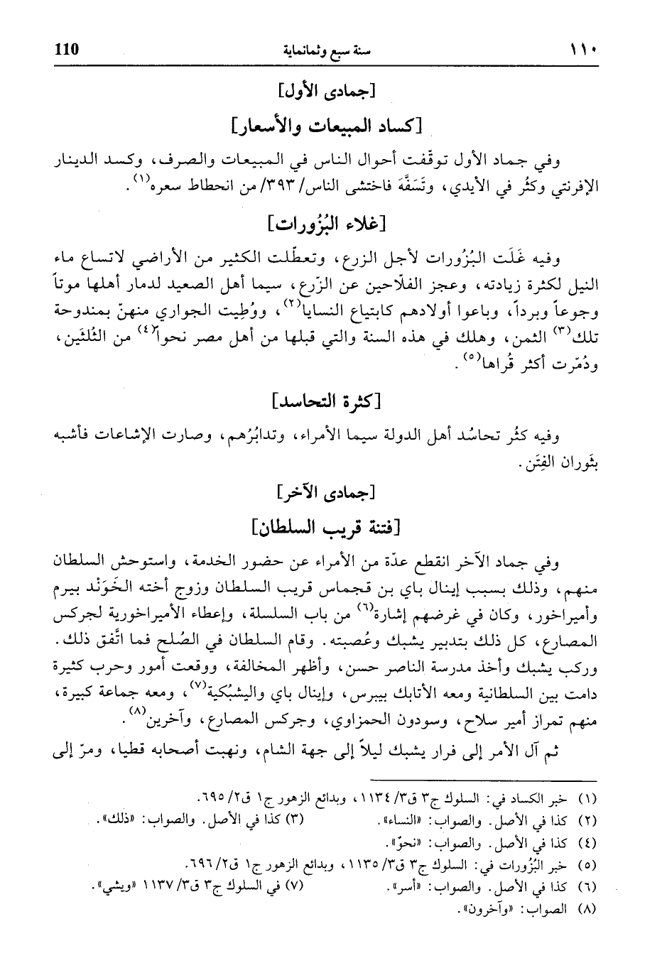 (¬1) خبر الكساد في: السلوك ج 3 ق 3/ 1134، وبدائع الزهور ج 1 ق 2/ 695.