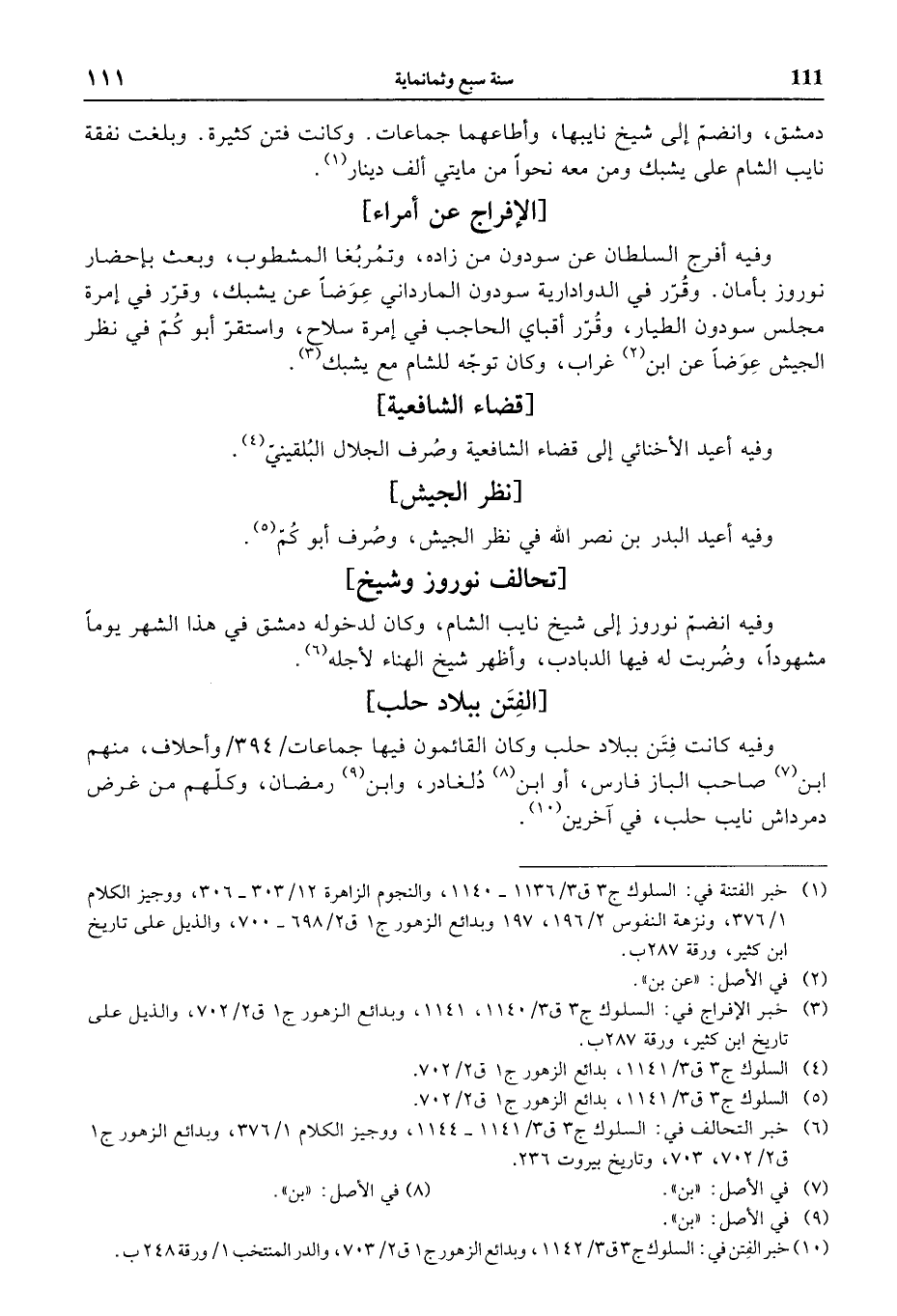 (¬10) خبر الفتن في: السلوك ج 3 ق 3/ 1142، وبدائع الزهور ج 1 ق 2/ 703، والدر المنتخب 1 / ورقة 248 ب.