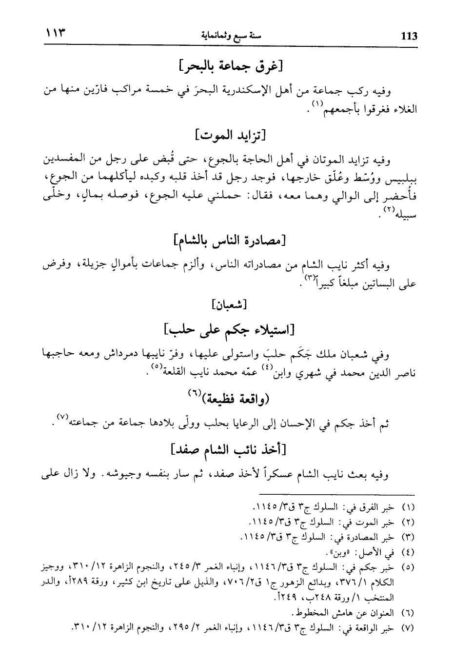 (¬7) خبر الواقعة في: السلوك ج 3 ق 3/ 1146، وإنباء الغمر 2/ 295، والنجوم الزاهرة 12/ 310.