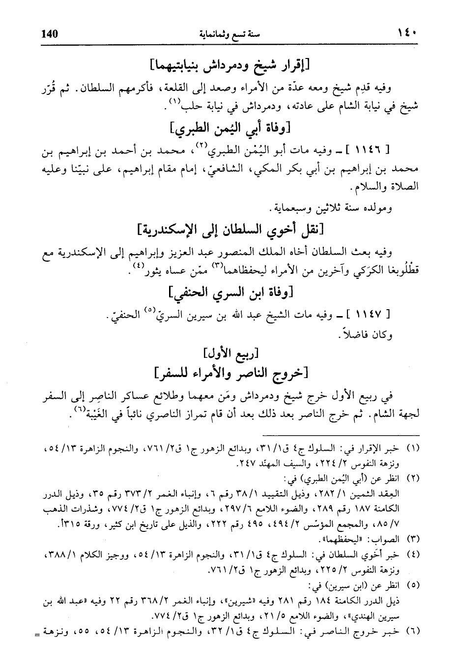 (¬5) انظر عن (ابن سيرين) في: ذيل الدرر الكامنة 184 رقم 281 وفيه «شيرين»، وإنباء الغمر 2/ 368 رقم 22 وفيه «عبد الله بن سيرين الهندي»، والضوء اللامع 5/ 21، وبدائع الزهور ج 1 ق 2/ 774.