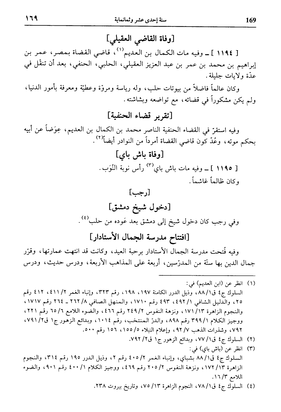 (¬4) السلوك ج 4 ق 1/ 78، النجوم الزاهرة 13/ 75، وتاريخ بيروت 238.