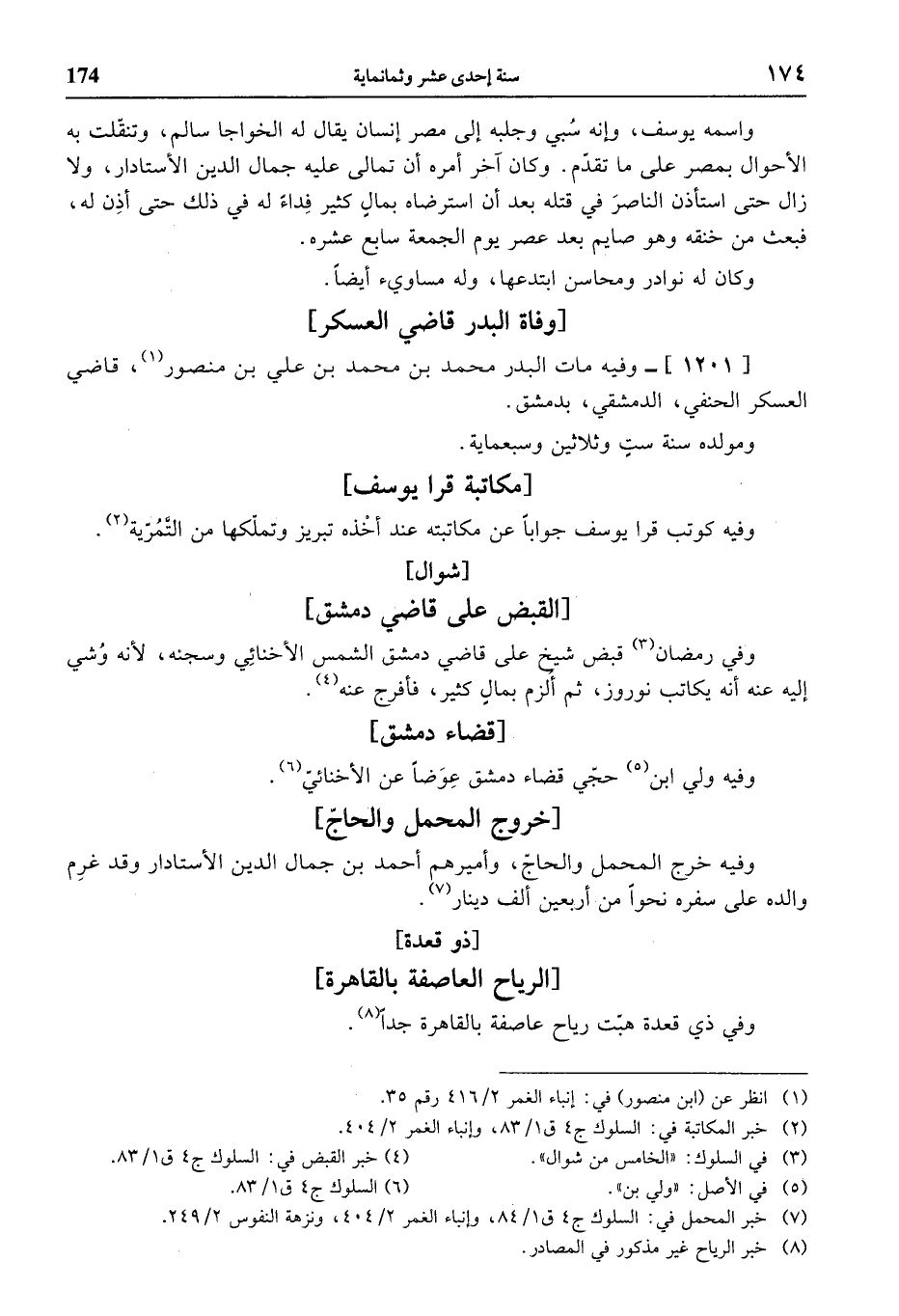 (¬7) خبر المحمل في: السلوك ج 4 ق 1/ 84، وإنباء الغمر 2/ 404، ونزهة النفوس 2/ 249.