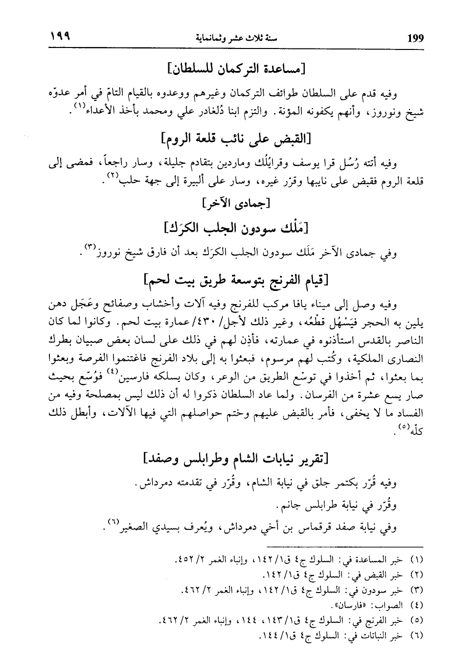 (¬5) خبر الفرنج في: السلوك ج 4 ق 1/ 143، 144، وإنباء الغمر 2/ 462.
