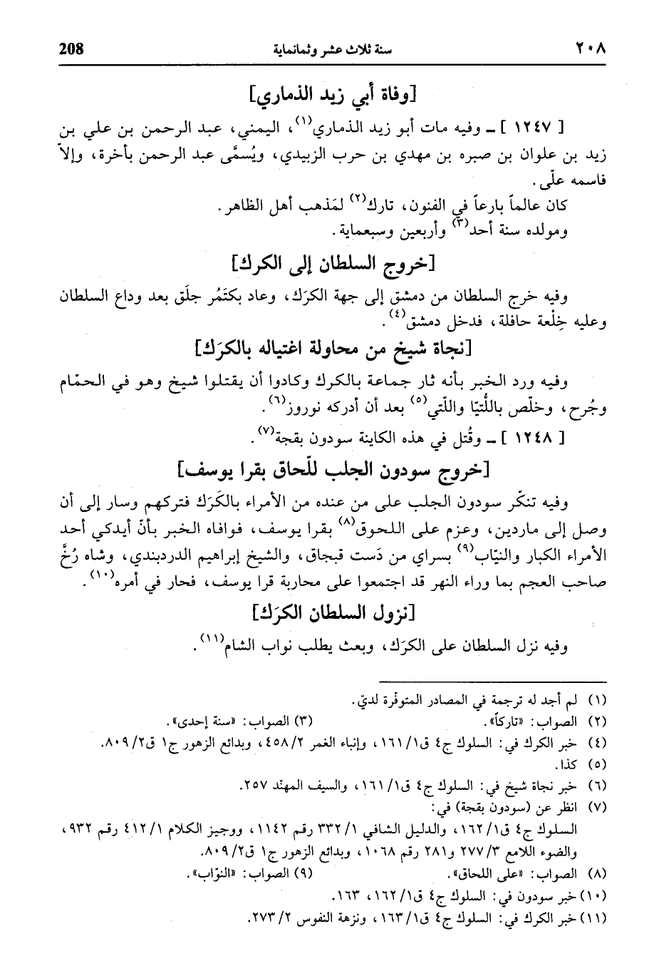 (¬7) انظر عن (سودون بقجة) في: السلوك ج 4 ق 1/ 162، والدليل الشافي 1/ 332 رقم 1142، ووجيز الكلام 1/ 412 رقم 932، والضوء اللامع 3/ 277 و 281 رقم 1068، وبدائع الزهور ج 1 ق 2/ 809.