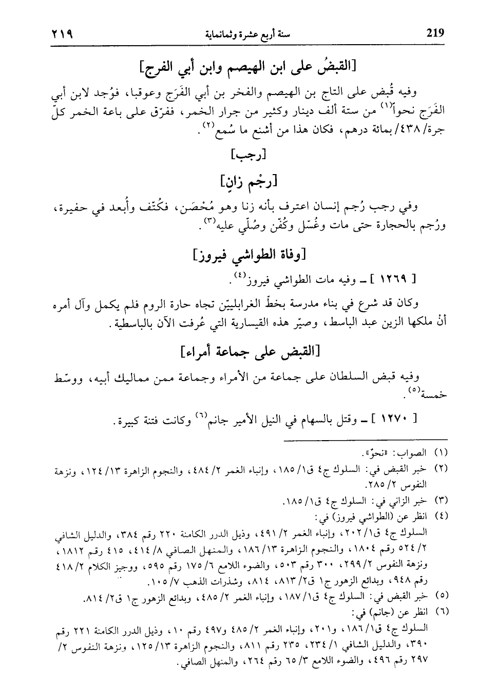 (¬6) انظر عن (جانم) في: السلوك ج 4 ق 1/ 186، و 201، وإنباء الغمر 2/ 485 و 497 رقم 10، وذيل الدرر الكامنة 221 رقم 390، والدليل الشافي 1/ 234، 235 رقم 811، والنجوم الزاهرة 13/ 125، ونزهة النفوس 2/ 297 رقم 496، والضوء اللامع 3/ 65 رقم 264، والمنهل الصافي.
