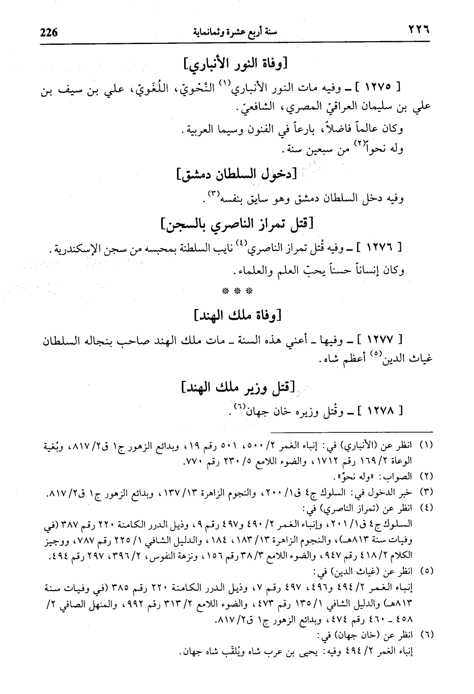 (¬1) انظر عن (الأنباري) في: إنباء الغمر 2/ 500، 501 رقم 19، وبدائع الزهور ج 1 ق 2/ 817، وبغية الوعاة 2/ 169 رقم 1712، والضوء اللامع 5/ 230 رقم 770.