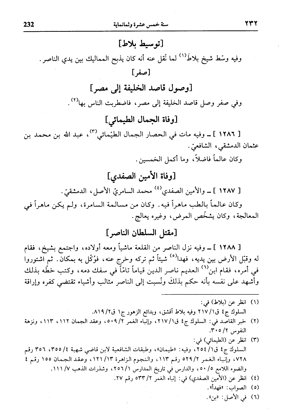(¬1) انظر عن (بلاط) في: السلوك ج 4 ق 1/ 217 وفيه بلاط آقشق، وبدائع الزهور ج 1 ق 2/ 819.