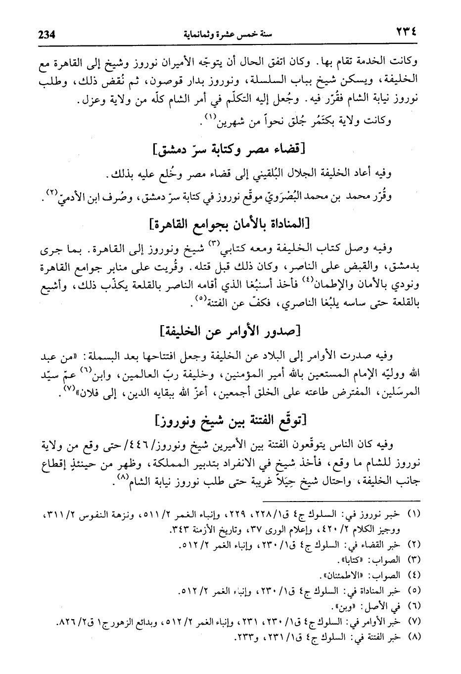 (¬1) خبر نوروز في: السلوك ج 4 ق 1/ 228، 229، وإنباء الغمر 2/ 511، ونزهة النفوس 2/ 311، ووجيز الكلام 2/ 420، وإعلام الورى 37، وتاريخ الأزمنة 343.